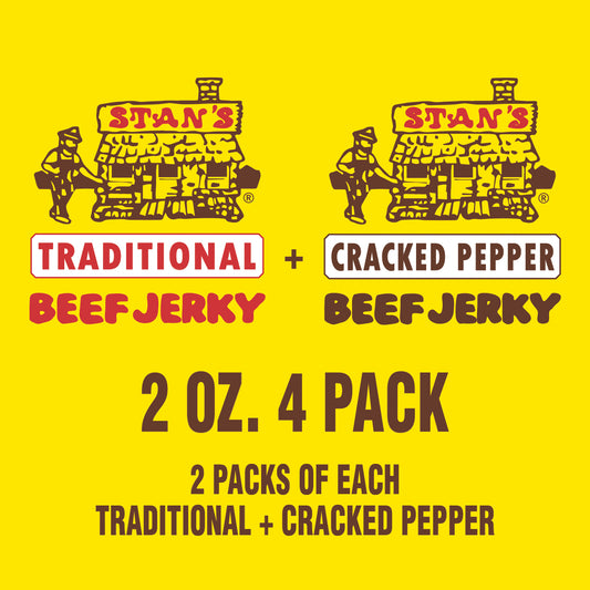 Stan's Beef Jerky BULK - 4 Pack - 2oz Traditional and Cracked Pepper